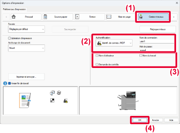 IMPRESSION LORSQUE LA FONCTION D’AUTHENTIFICATION UTILISATEUR EST ACTIVÉE