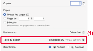 Sélectionnez le format d'enveloppe dans les réglages