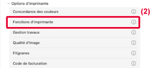 - Sélectionnez [Fonctions d'imprimante] dans "Options d'imprimante",