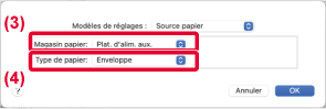de papier du plateau d'alimentation auxiliaire sur [Enveloppe].
