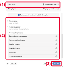 Sélectionnez les réglages d’impression.