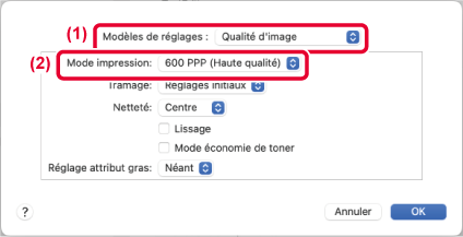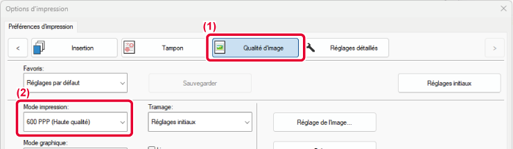 Sélectionnez ce mode pour imprimer des photos en couleur avec une définition supérieure et pour imprimer des lignes fines et nettes. |