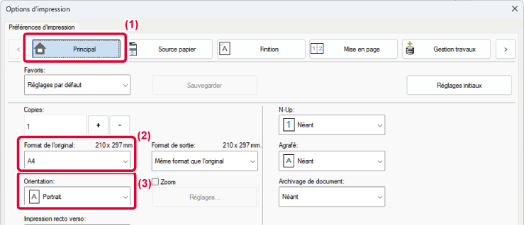 | Orientation du papier | Résultats de l'impression | |||