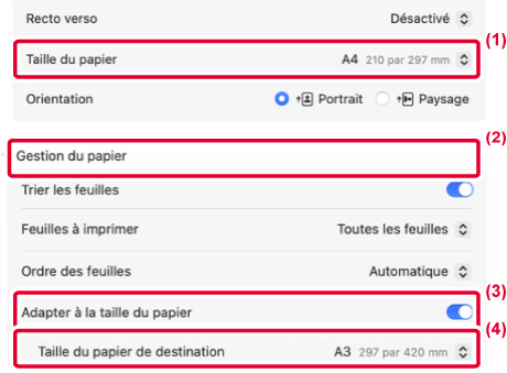 l'impression d'un document sur du papier dont le format est différent