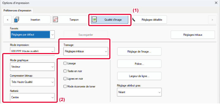 luminosité et le contraste dans les réglages d'impression lorsqu'une