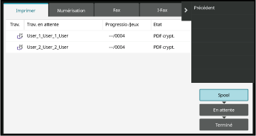 Lorsque vous appuyez sur l'écran d'état des travaux,