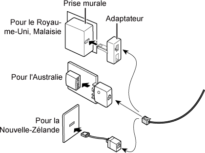 Insérez la fiche à l'une des extrémités du cordon de la ligne téléphonique dans la prise de la ligne téléphonique (LIGNE) de la machine, comme illustré, jusqu'à ce qu'elle s'enclenche, et insérez l'autre fiche dans une prise téléphonique murale jusqu'à ce qu'elle s'enclenche.