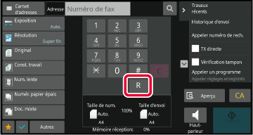 Lorsque le réglage PBX est activé, la touche [R] apparaît