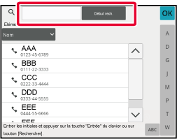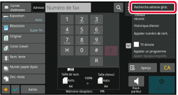 Dans l'écran initial ou l'écran du carnet d'adresses, appuyez sur la touche [Recherche d'adresse globale] du panneau de commande.