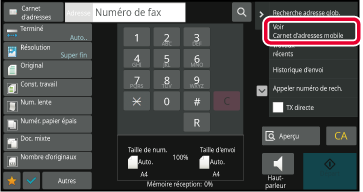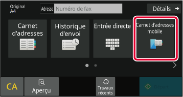 Dans l'écran initial ou l'écran du carnet d'adresses, appuyez sur la touche [Voir Carnet d'adresses mobile] du panneau de commande.