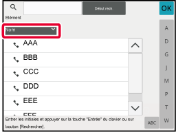 élément à rechercher parmi [Initiales], [Nom] ou [Adresse].