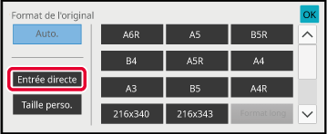 Appuyez sur la touche [Entrée directe] et saisissez le format de numérisation.