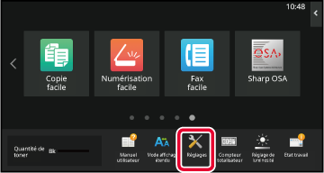 Vérifiez que le voyant d'information clignote en blanc, puis appuyez sur la touche [Réglages] de l'écran d'accueil.