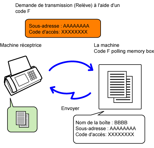 un code F (sous-adresse et code d'accès) avec le numéro de télécopie