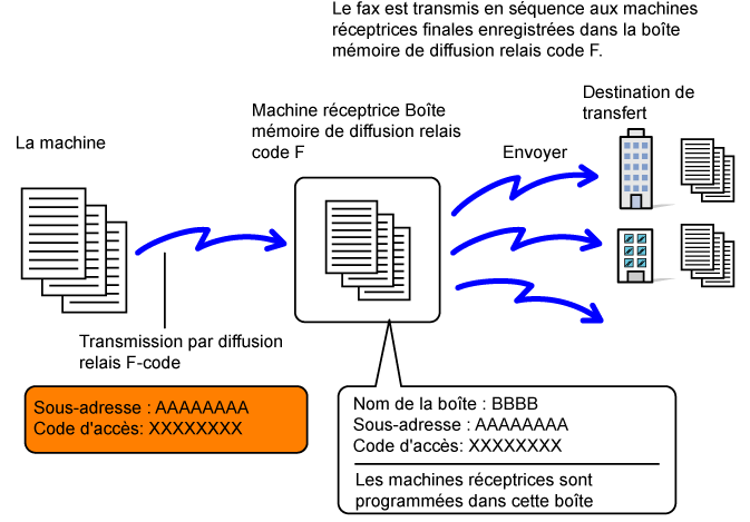demande à cette machine de relayer la télécopie à plusieurs machines