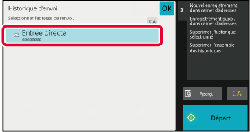 Dans le mode fax ou envoi d'image, appuyez sur [Historique d'envoi]