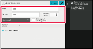 Lorsque vous appuyez sur la touche [Enregistrement suppl. dans carnet d'adresses]