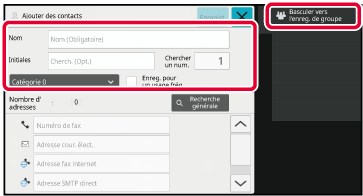 Saisissez les informations de base, et appuyez sur [Basculer vers l'enreg. de groupe] du panneau de sélection.