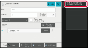 Dans l'écran d'enregistrement de l'adresse, appuyez sur [Restreindre l'adresse publique des contacts] du panneau de sélection.