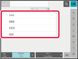 destination pour la transmission en appuyant sur l'adresse de destination enregistrée.