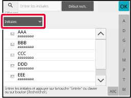 → [Réglage des conditions] → [Sélect. carnet adr. par déf.] → [Appliquer les adresses