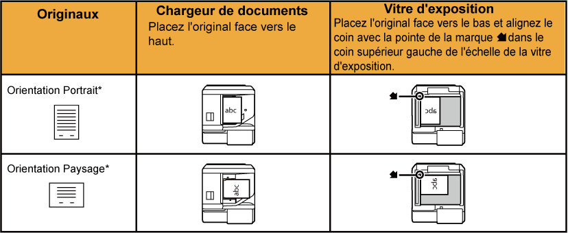 Précisez l'orientation de l'original que vous avez mis en place au cours de l'étape 1.