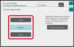 (Sur le BP-51M26/BP-51M31/BP-51M36/BP-51M45/BP-51M55/BP-51M65, le kit d'extension OCR est nécessaire.) Appuyez sur la touche [Mode de compression] ou sur la touche [Taux de compression].