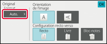 Sur l'écran initial, vérifiez que le format original s'affiche sur la touche [Original].En mode