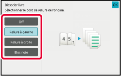 Une fois la numérisation terminée, placez l'original suivant et appuyez sur la touche [Départ].Les pages ouvertes d'une brochure piquée