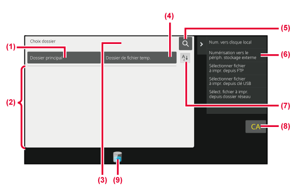 - Affiche l'état d'utilisation du stockage intégré à la machine.