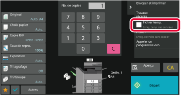 Placez l'original sur le magasin du chargeur automatique de documents ou sur la vitre d'exposition.Passez en mode normal et appuyez sur [Fichier temp.] du