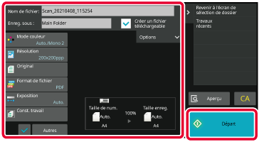 Appuyez sur la touche [Départ] pour lancer la numérisation.