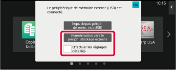 Appuyez sur [Numérisation vers le périph. stockage externe] du panneau de sélection.
