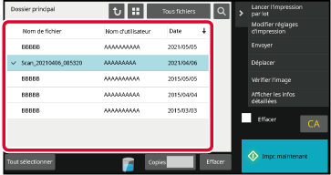 Quand le dossier est sélectionné, les fichiers de ce dossier apparaissent. Sélectionnez le fichier que vous souhaitez utiliser.