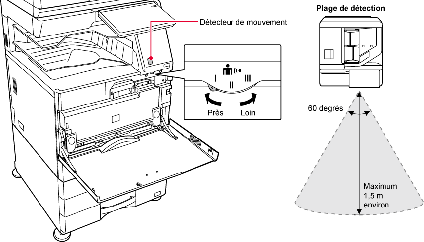 Trois réglages sont disponibles pour la plage de détection