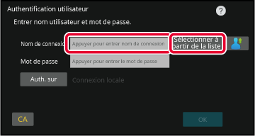 "Connexion locale" et, pour les réglages de la méthode d'authentification,