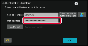 Le texte entré s'affiche avec "*". Après avoir saisi