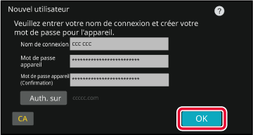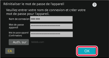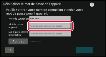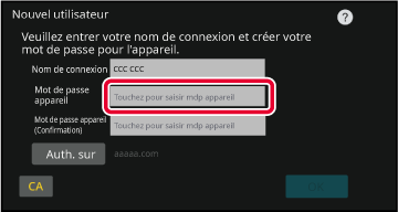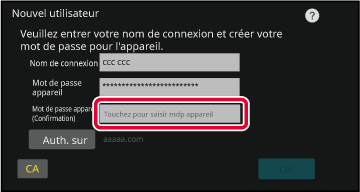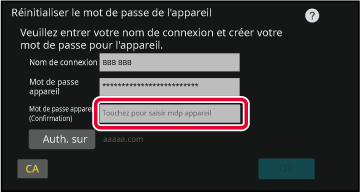 "Mot de passe" et "Mot de passe (confirmation)" ne seront pas affichés sur l'écran