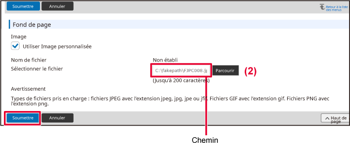Sélectionnez "Utiliser Image personnalisée", puis cliquez sur le bouton [Parcourir] pour sélectionner l'image souhaitée.