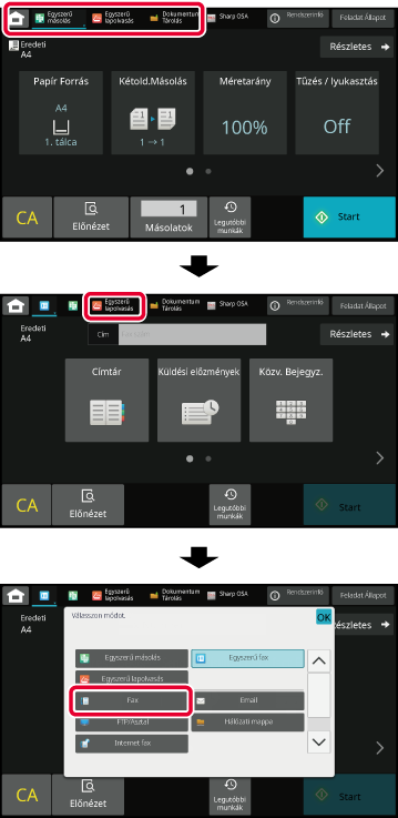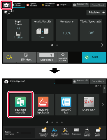 Ha a [Főablak] gombra koppint, az érintőpanelen megjelenik