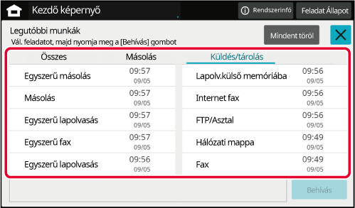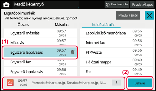 Erre a gombra koppintva listán jeleníti meg a legutóbb
