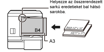 Tegye az eredetit az előlappal felfelé a dokumentumadagoló tálcára, hogy az összerendezett lapok a bal hátsó sarokba illeszkedjenek.