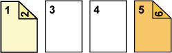 ![]() Az első és második oldalt kétoldalasan az előlapra másolja, és a hatodik eredeti oldalt egyoldalasan felmásolja a hátlapra. |