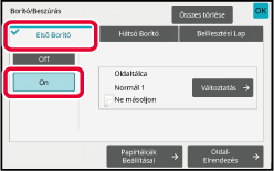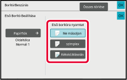 Elülső borítólap másolási beállítása.