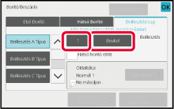 A Beillesztés B típus - Beillesztés H típus beállításai megegyeznek a Beillesztés A típuséval.A számgombok segítségével írja be annak az oldalnak a számát, ahova közlapot szeretne beszúrni, majd érintse meg a [Bevitel] gombot.