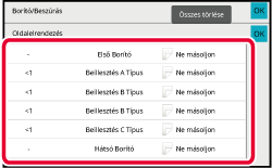 | Az egyes fedőlapok beállítási feltételei | Kész másolatok | |