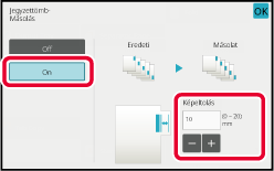 Az eredeti méret gombra koppintáskor megjelennek a használható nagyítási méretek, a másolópapír mérete és a lapszám gombjai.Koppintson annak a méretnek a gombjára, amelyre az eredeti nagyítani szeretné.