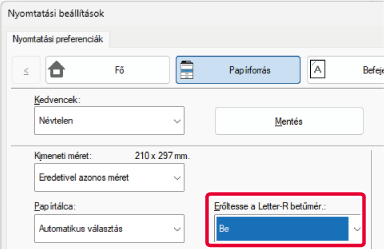 ") a papír mérete és tájolása függvényében