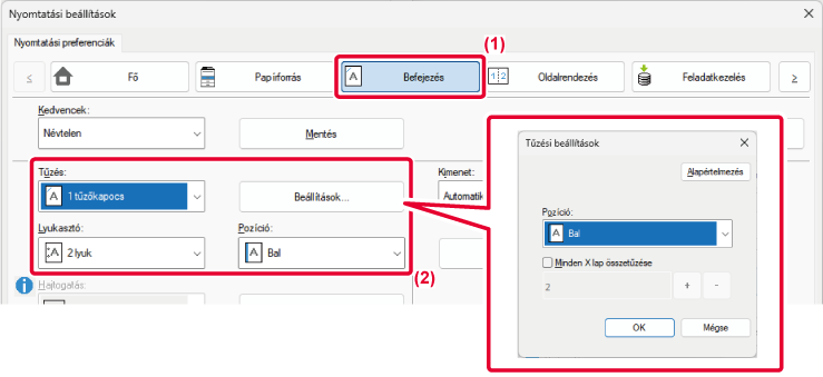 ha a tűzés funkciót a kétoldalas nyomtatással kombinálja.
