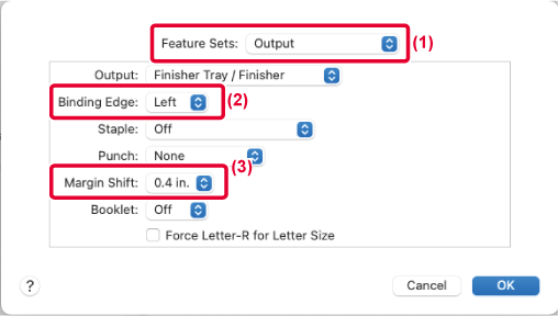 Válasszon a [Margó eltolás] menüből. Ha egy másik numerikus